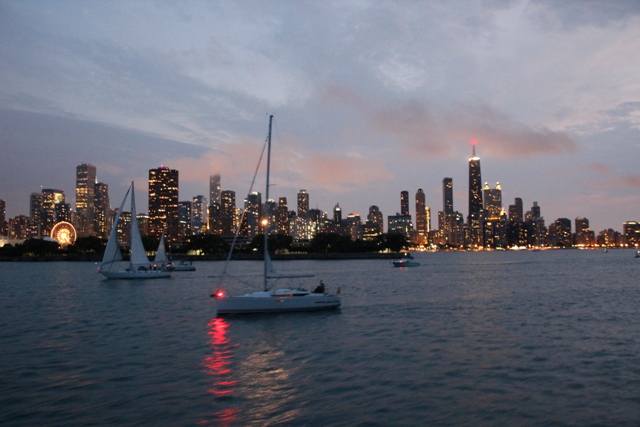 Als alles verstaut ist, melden sich unsere Bäuche: Abendessen. Im kleinen mexikanischen Restaurant „Su Casa“ speisen wir ganz ausgezeichnet, die Stärkung ist auch nötig, denn nun fahren wir zum Navy Pier. Zunächst bummeln wir am Pier entlang; hier gibt es neben dem Children Museum unzählige Giftshops und Restaurants. Dann ist es aber endlich 20:45 Uhr und unsere Bootstour auf dem Michigan Lake mit dem abschliessenden Feuerwerk startet. Wir schippern an der grandiosen abendlichen Skyline von Chicago vorbei. Haben einen tollen Blick zum Sears/Willis Tower, Trump Tower und John Hancock Tower. Grossartig!!!