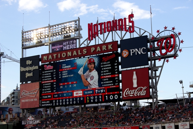 So fällt das Frühstück eher spärlich aus, da das Buffett schon fast abgeräumt wurde. Also bummeln wir ein bisschen herum, ehe wir mit der Metro zum Nationals Park fahren, denn heute empfangen die Washington Nationals die Phillies aus Philadelphia im Baseball. Die Partie beginnt recht flott, verliert aber dann an Fahrt und trotz eines Homeruns des Heimteams – den einzigen der Begegnung – verlieren die Nationals mit 5:3.