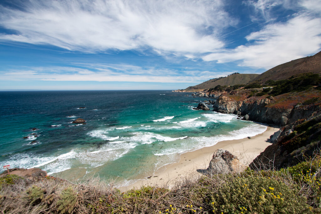Den Tag beginnen wir mit einem kleinen Spaziergang durch das hübsche Carmel-by-the-Sea. Hier haben viele bekannte Schriftsteller unter anderem Ernest Hemingway oder John Steinbeck gelebt und Clint Eastwood war sogar für 2 Jahre Bürgermeister. Allerdings ist der Ort nichts für das „kleine Portemonnaie“; zum Glück öffnen die Läden erst gegen 10 oder teilweise sogar 11, da sind wir schon längst wieder auf der Route Nr. 1.