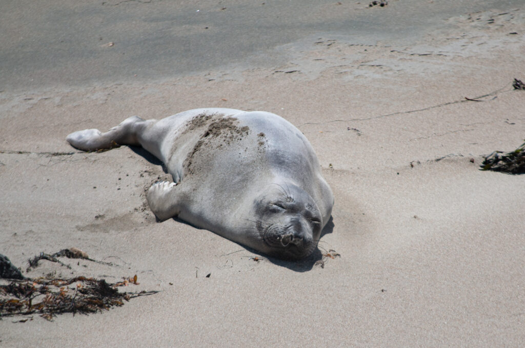 Nächster Stopp ist der „Elephant Seal Vista Point“. Hier liegen die grössten Robben der Welt „gestapelt“ am Land. Es ist eine Freude, diesem Treiben zuzusehen.