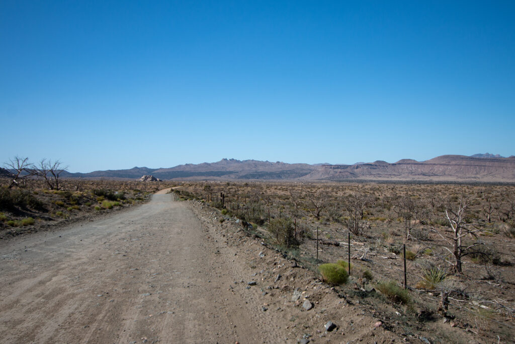Zurück auf der ‘Kelso Cima Road’, die asphaltiert ist, geht es weiter nordwärts, ehe wir wieder eine gravel road nutzen, um zum nächsten Highlight des Parks zu gelangen. Auf der Cedar Canyon Road geht es zum ‘Hole-in-the-Wall‘. Mit in den Berg geschlagenen Metallringen könnte man denselbigen besteigen. Da die Zeit aber ein wenig fortgeschritten ist und wir auch keine Bergsteiger sind, belassen wir es dabei. Die Aussicht, die wir vom Boden haben, ist faszinierend genug.