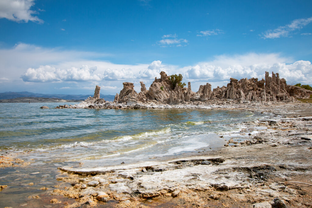 Als wir vor 4 Wochen am Abend am Mono Lake waren, standen wir beim Boardwalk Trail im Mono Lake Park. Nun wollen wir aber auch den Südstrand erkunden. Dort sind die Salzformationen eindrücklicher und es gibt auch viel mehr davon.
