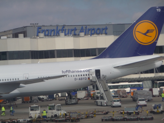 Nachdem wir in der Lounge in Zürich unser obligatorisches Abflugbierli getrunken haben, geht um 9:20 Uhr mit etwas Verspätung der Flieger nach Frankfurt. In Frankfurt haben wir ein bisschen Aufenthalt. Aber bei diesem grossen Flughafen kommt keine lange Weile auf. Wir haben schon einen richtigen Fussmarsch hinter uns, bis wir an unserem Gate sind. Und als wir dort sind, gibt es eine Verschiebung und wir müssen wieder zurück. Aber pünktlich um 13:05 Uhr hebt die Maschine ab nach Vancouver.