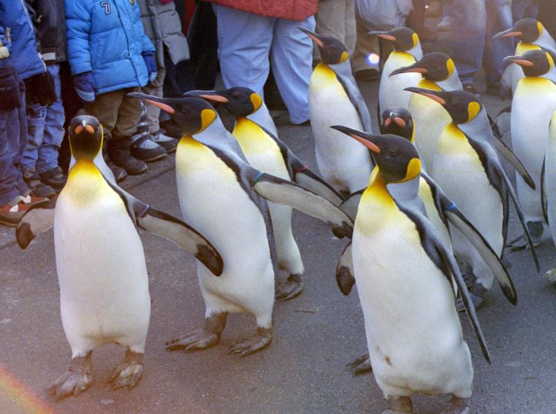 Wenn die Temperaturen unter 10° fallen, dann spazieren die Kaiserpinguine durch den Zoo.